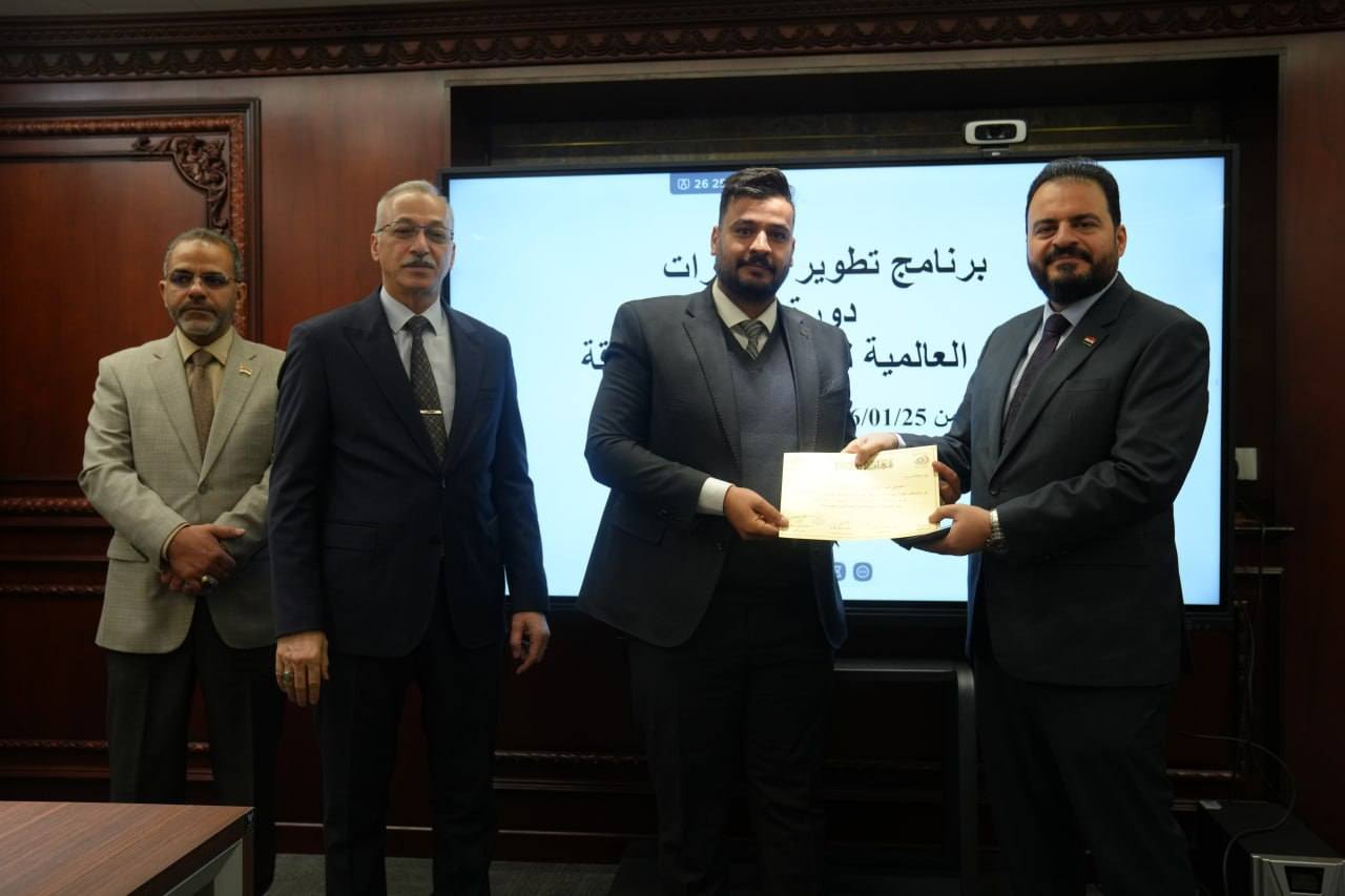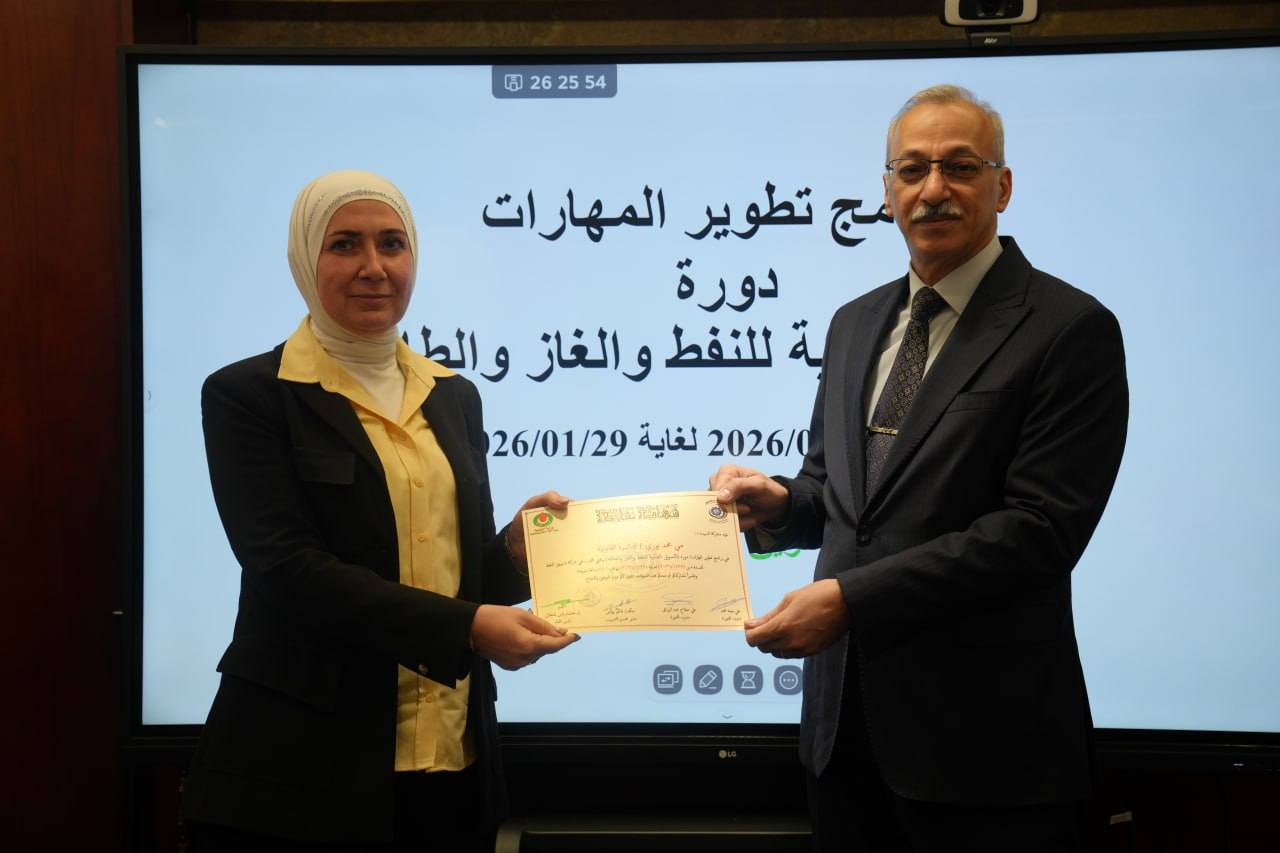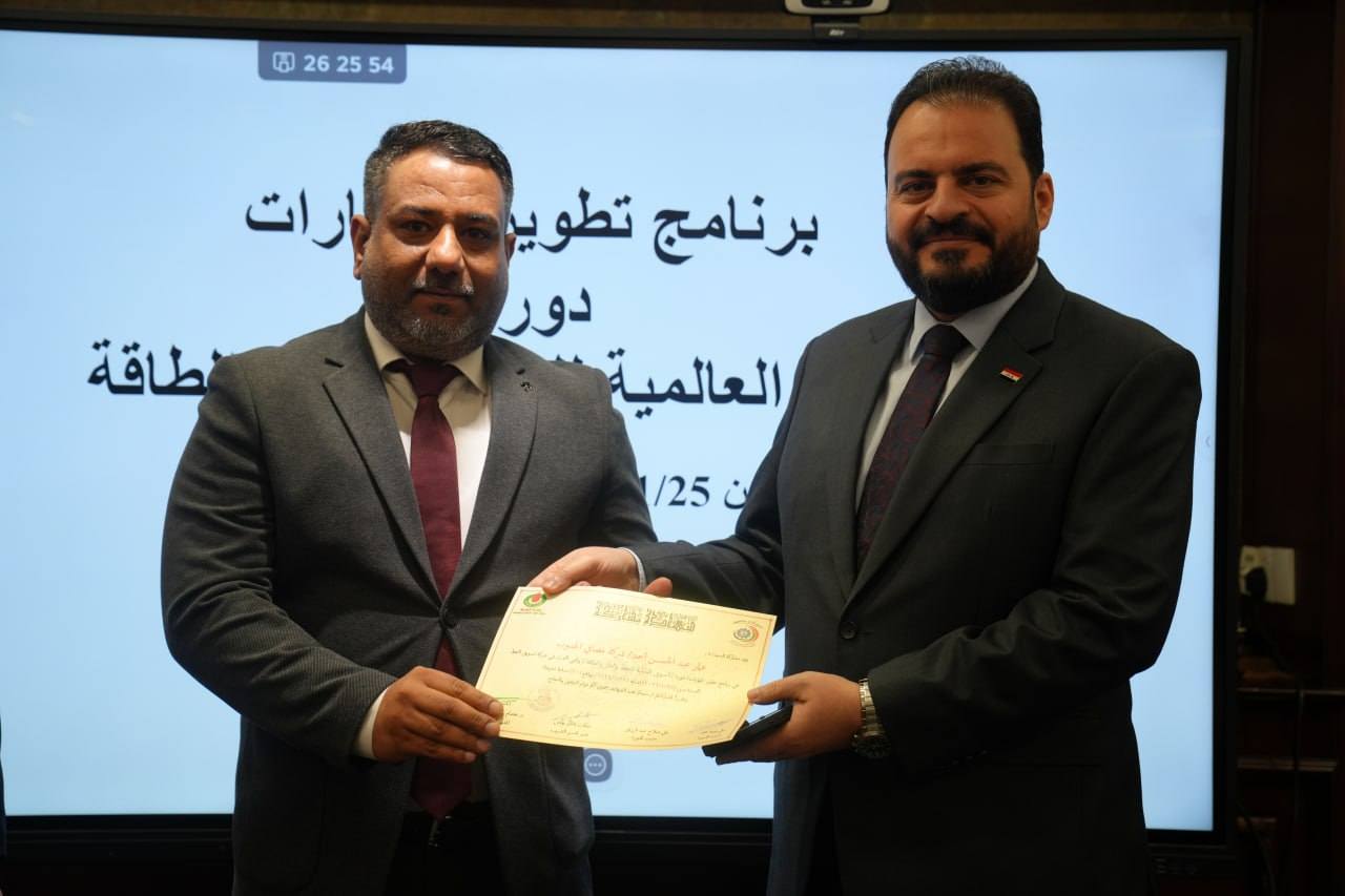 اختُتمت يوم الخميس الموافق 29 / 1 / 2026 أعمال الدورة التدريبية الثانية بعنوان «السوق العالمية للنفط والطاقة»، والتي أُقيمت للوجبة الثانية من المشاركين ضمن برنامج تطوير المهارات، والمنفذة في مقر شركة تسويق النفط ، وبحضور المهندس علي نزار الشطري مدير عام شركة تسويق النفط والدكتور هشام ياس شعلان مدير عام دائرة التدريب والتطوير في وزارة النفط ، وشهد اليوم الختامي أداء الاختبار النهائي للمشاركين، أعقبه توزيع شهادات المشاركة، تقديراً لجهودهم والتزامهم خلال فترة الدورة ، وتأتي هذه الدورة ضمن برنامج تطوير المهارات لكوادر شركات ودوائر وزارة النفط، وبمشاركة عدد من منتسبي شركات ودوائر الوزارة، بهدف تعزيز المعرفة بالأسواق العالمية للنفط والطاقة وتطوير القدرات المهنية للمشاركين، بما يسهم في رفع كفاءة الأداء المؤسسي.