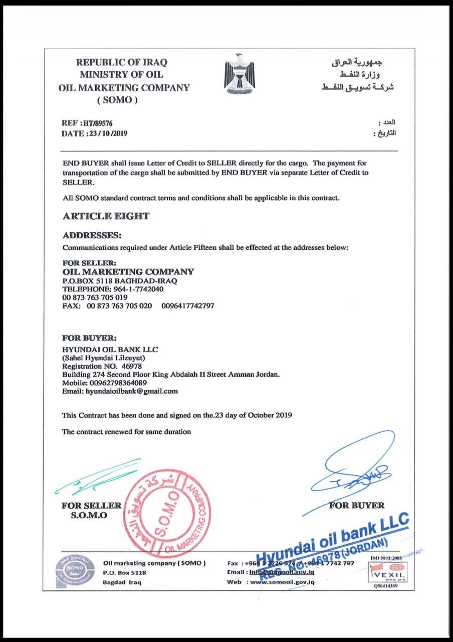 تنفي شركة تسويق النفط صحة العقود المتداولة والمنسوبة إليها وتؤكد أنها لم تصدر عنها ولا تتحمل أي مسؤولية قانونية أو تعاقدية بشأنها، محذرة من التعامل أو الاستناد إلى هذه العقود، مع احتفاظها بحقها القانوني في اتخاذ الإجراءات اللازمة بحق المخالفين او المتداولين بها.